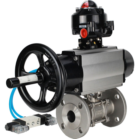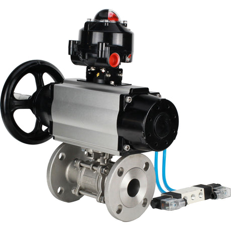Ball valves Elephant BV3232P(3pc)-FP-F-ISO-H DN65-100 25/40 bar flanged, 316 stainless steel, full bore, seal - PTFE, with pneumatic drive PA-DA pneumatic distributor 4M310-08 220V, LSU APL-210N, manual backup MON3-700-T38-ISO, ATU AFC2000