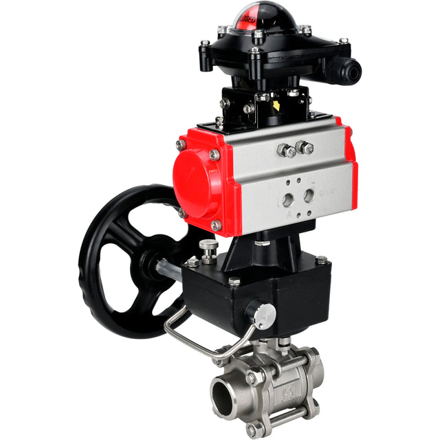 Ball valves Elephant BV3232P(3pc)-FP-W-ISO-H WDVF DN15-32 63 bar full bore, body - 316 stainless steel, seal - PTFE, for welding, with PA-DA pneumatic actuator, LSU APL-210N, manual backup for MON