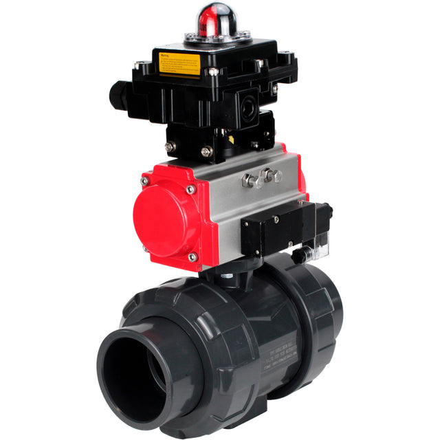 Ball valves Elephant BV4242E-FP-GRM-ISO, body material - UPVC, ball material - UPVC, seal - EPDM, with pneumatic actuator double action PA-DA, pneumatic distributor 4M310-08 24V and LSU APL-410N EX