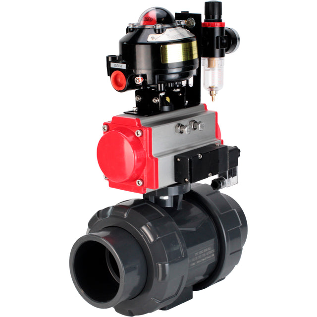 Ball valves Elephant BV4242E-FP-GRM-ISO, body material - UPVC, ball material - UPVC, seal - EPDM, with pneumatic actuator double action PA-DA, pneumatic distributor 4M310-08 24V, LSU APL-510N EX and ATU AFC2000