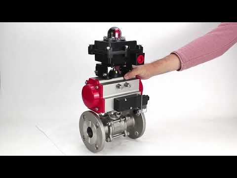 Edelstahl-Kugelhahn Elephant BVFPT-ISO.304.180 dreiteilig, Gehäusewerkstoff - Edelstahl SS304, Dichtung - PTFE, Flansch, voller Durchgang, pneumatischer Antrieb Elephant DA, pneumatischer Verteiler 4M310-08 220 V, Endschalterblock APL-410N EX
