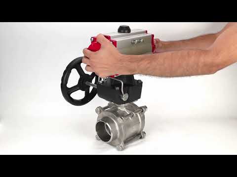 Elephant BV3232P(3pc)-FP-W-ISO-H Rou63/40/25 PA-DA 4M310-08 220V MON manuell kuppelbare Kupplung mit Doppelumdrehungsantrieb ermöglicht das manuelle Einstellen der erforderlichen Positionierung von Ventilen, Dämpfern und anderen Vierteldrehvorrichtungen beim Austausch von pneumatischen, elektrischen oder hydraulischen Vierteldrehantrieben. Geeignet für den Innen- und Außenbereich. Das modulare Design der manuellen Übersteuerung ist darauf ausgelegt, die effizienteste und effektivste Lösung für das gesamte Spektrum der manuellen Übersteuerungsanwendungen zu bieten.