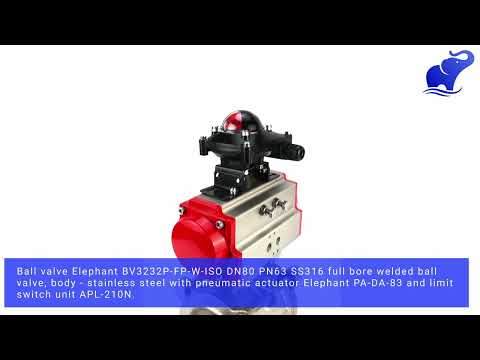 Kugelhahn aus Edelstahl Elephant kshpp-316200-da-apl210n, Gehäusematerial - Edelstahl AISI 316, Kugelmaterial - Edelstahl AISI 316, Dichtung - PTFE, pneumatisch betätigt