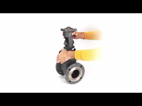 Der mit der Spindel verbundene Keil wird je nach Drehrichtung des Handrades abgesenkt oder angehoben und schließt oder öffnet den Durchgangsbereich des Schieberkörpers.