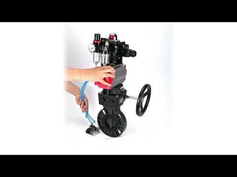 Butterfly valves Elephant WBV4242E-2W-Fb-ISO, body material - UPVC, disc material - UPVC, seal - EPDM, with pneumatic actuator double action PA-DA, pneumatic distributor 4V320-08 220V, LSU APL-410N EX, ATU AFC2000 and handwheel MON - DN100 / 10 bar ist auf Lager und wird versandt, sobald es wieder verfügbar ist