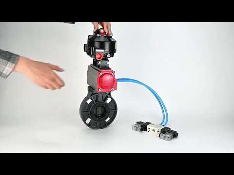Butterfly valves Elephant WBV4242E-2W-Fb-ISO, body material - UPVC, disc material - UPVC, seal - EPDM, with pneumatic actuator double action PA-DA, pneumatic distributor 4V320-10 220V and LSU APL-510N EX - DN100 / 10 bar ist auf Lager und wird versandt, sobald es wieder verfügbar ist