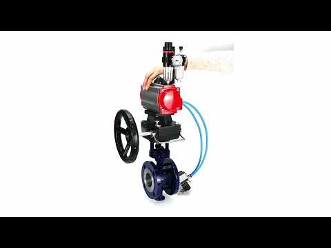 Wasser-Schmetterlingsventil Elephant WBV3EX-3432M-1W-F-ISO, Gehäusematerial - Kohlenstoffstahl, Scheibenmaterial - Edelstahl AISI 316, Dichtung - Metall, pneumatischer Antrieb PA-DA Doppelwirkung, 4V320-10 220V Handrad MON, ATU AFC2000 - DN100 / 25 bar ist auf Lager und wird versandt, sobald es wieder verfügbar ist