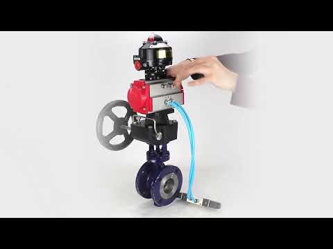 Wasser-Schmetterlingsventil Elephant WBV3EX-3432M-1W-F-ISO, Gehäusematerial - Kohlenstoffstahl, Scheibenmaterial - Edelstahl AISI 316, Dichtung - Metall, pneumatischer Antrieb PA-DA Doppelwirkung, 4V320-10 220V, LSU APL-510N EX, Handrad MON