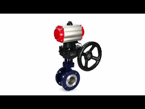 Wasser-Schmetterlingsventil Elephant WBV3EX-3432M-1W-F-ISO, Gehäusematerial - Kohlenstoffstahl, Scheibenmaterial - Edelstahl AISI 316, Dichtung - Metall, pneumatischer Antrieb PA-DA Doppelwirkend Handrad MON