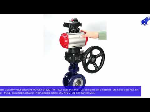 Wasser-Schmetterlingsventil Elephant WBV3EX-3432M-1W-F-ISO, Gehäusematerial - Kohlenstoffstahl, Scheibenmaterial - Edelstahl AISI 316, Dichtung - Metall, pneumatischer Antrieb PA-DA Doppelwirkung, LSU APL-210N, Handrad MON