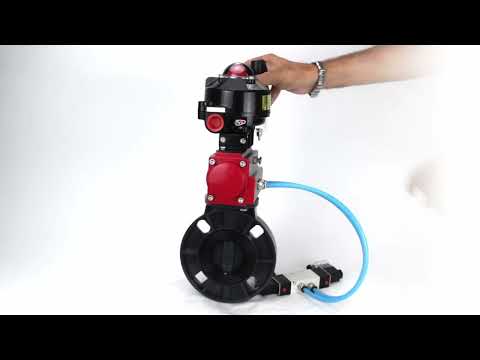 Butterfly valves Elephant WBV4242E-2W-Fb-ISO, body material - UPVC, disc material - UPVC, seal - EPDM, with pneumatic actuator double action PA-DA, pneumatic distributor 4V320-08 220V, LSU APL-510N EX and ATU AFC2000 - DN100 / 10 bar ist auf Lager und wird versandt, sobald es wieder verfügbar ist