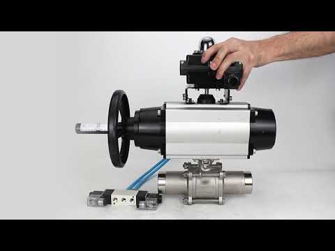 Kugelhähne Elephant BV3131P(3pc)-FP-W-ISO-H LANG, Gehäusematerial - Edelstahl AISI 304, Dichtung - PTFE / PTFE / Teflon, mit pneumatischem Doppelwirkungsantrieb PA-DA-105-1, 4V320-10 220V, LSU APL-410N Ex