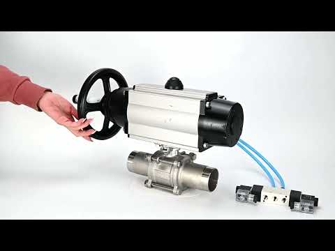 Kugelhähne Elephant BV3131P(3pc)-FP-W-ISO-H LANG, Gehäusematerial - Edelstahl AISI 304, Dichtung - PTFE / PTFE / Teflon, mit pneumatischem Doppelwirkungsantrieb PA-DA-105-1, 4V320-10 220V - DN80 / 25 bar ist auf Lager und wird versandt, sobald es wieder verfügbar ist