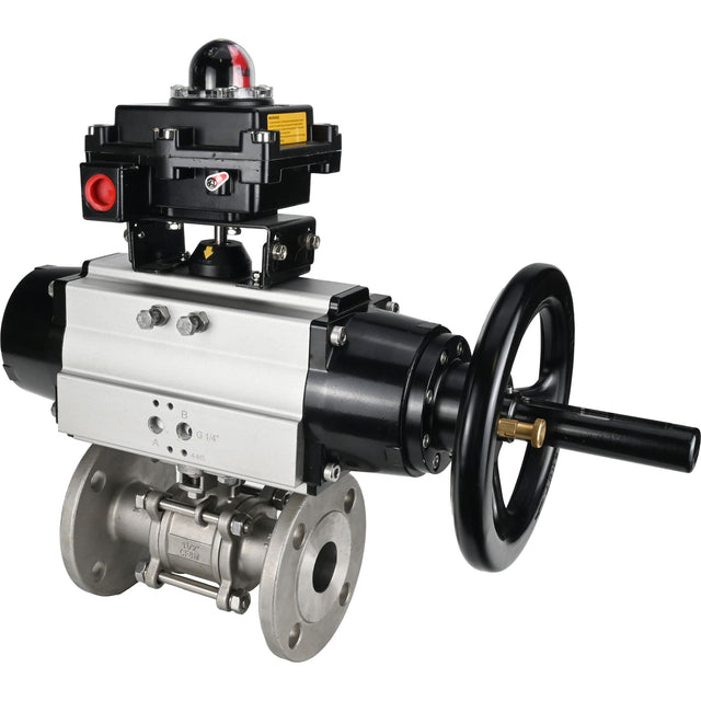 Ball valves Elephant BV3232P(3pc)-FP-F-ISO-H DN65-100 25/40 bar flanged with ISO flange, body - 316 stainless steel, full bore, seal - PTFE, with pneumatic drive PA-DA-105-1, LSU APL-410N Ex