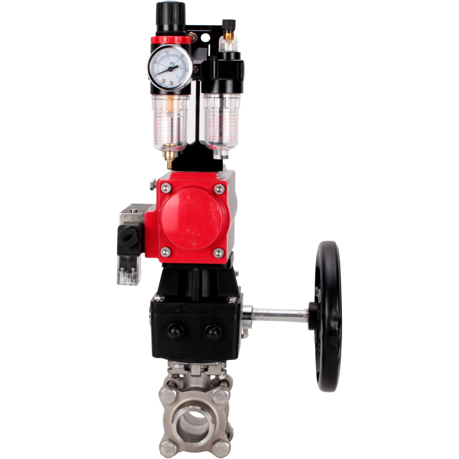 Ball valves Elephant BV3232P(3pc)-FP-W-ISO-H WDVF DN15-32 63 bar full bore, 316 stainless steel, seal - PTFE, for welding, with PA-DA pneumatic actuator, pneumatic distributor 4M310-08 220V, manual backup for MON, ATU AFC2000 - DN25 / 63 bar ist auf Lager und wird versandt, sobald es wieder verfügbar ist