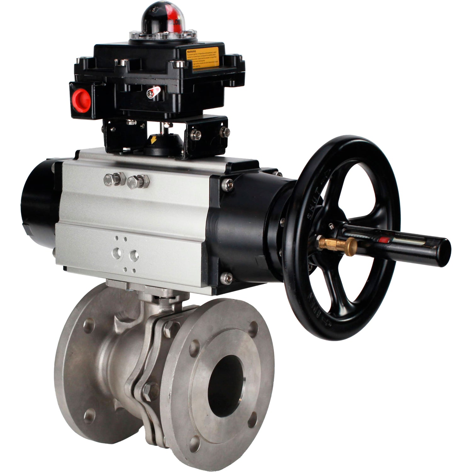 Kugelhähne Elephant BV3232P(2 Stück)-FP-F-ISO-H DN80-100 16 bar Vollbohrung mit Flansch, Gehäuse - Edelstahl 316, Dichtung - PTFE, mit pneumatischem Antrieb Elephant PA-DA-105-1 und LSU APL-410N EX - DN100 / 16 bar ist auf Lager und wird versandt, sobald es wieder verfügbar ist