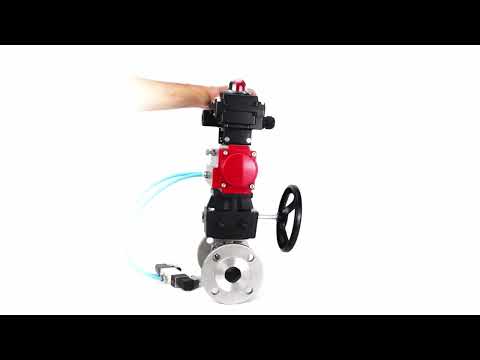 Kugelhähne Elephant BV3232P(3pc)-FP-F-ISO-H DN15-40 16 bar, dreiteilig, voller Durchgang, geflanscht, Edelstahl SS304, PTFE, mit pneumatischem Antrieb PA-DA, mit pneumatischem Verteiler 4V320-08 220V, mit LSU APL-410N EX, manuell Doubler MON1-250-T26-ISO - DN100 / 16 bar ist auf Lager und wird versandt, sobald es wieder verfügbar ist