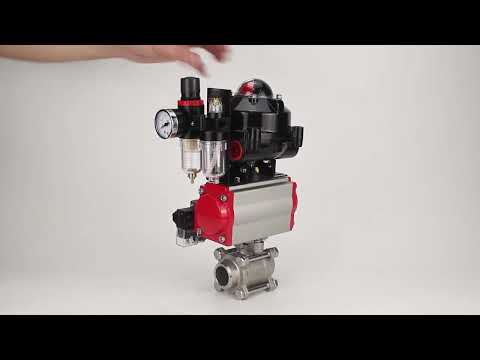 Kugelhähne Elephant BV3232P(3pc)-FP-W-ISO-H zum Schweißen, voller Durchgang, Gehäuse aus Edelstahl. Stahl SS316, Dichtung - PTFE, mit pneumatischem Antrieb Elephant PA-SA 052-130 pneumatischer Verteiler 4M310-08 24V ATU AFC2000 APL-510N-EX - DN10 / 63 bar ist auf Lager und wird versandt, sobald es wieder verfügbar ist