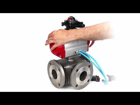 Kugelhähne Elephant BV3232P(4pc)-FP-3WL-F-ISO-H 16 bar Vollbohrung, geflanscht, Gehäuse - Edelstahl SS316, ISO-Flansch F03/F04-F10/F12, quadratisch 9x9-19x19, mit pneumatischem Antrieb PA-SA, pneumatisches Ventil 4V320-10 220V und LSU APL-210N