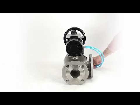 Kugelhähne Elephant BV3232P(4pc)-FP-3WL-F-ISO-H DN100 16 bar Vollbohrung, geflanscht, Gehäuse - Edelstahl SS316, ISO-Flansch F10/F12, Quadrat 19x19, mit doppeltem pneumatischem Antrieb PA-DA-105-1 Betätigung und pneumatischem Verteiler 4V320-8 220V