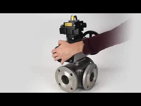 Kugelhähne Elephant BV3232P(4pc)-FP-3WL-F-ISO-H DN100 16 bar Vollbohrung, geflanscht, Gehäuse - Edelstahl SS316, ISO-Flansch F10/F12, quadratisch 19x19, mit doppeltem pneumatischem Antrieb PA-DA-105-1 Aktionen und LSU APL-410N EX