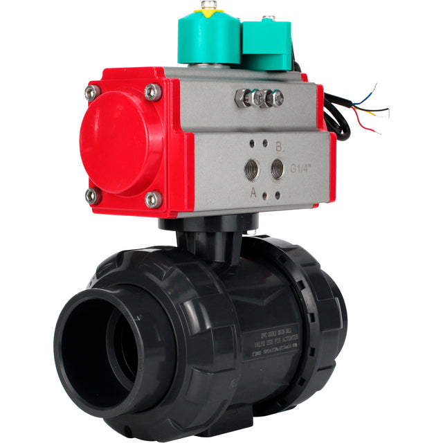 Ball valves Elephant BV4242E-FP-GRM-ISO, body material - UPVC, ball material - UPVC, seal - EPDM, with pneumatic actuator double action PA-DA and magnetic switch ALS200D