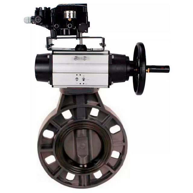 Butterfly valves Elephant WBV4242E-2W-Fb-ISO, body material - UPVC, disc material - UPVC, seal - EPDM, with pneumatic actuator double action PA-DA-105-1 and electro-pneumatic rotary positioner YT-1000RSN with feedback
