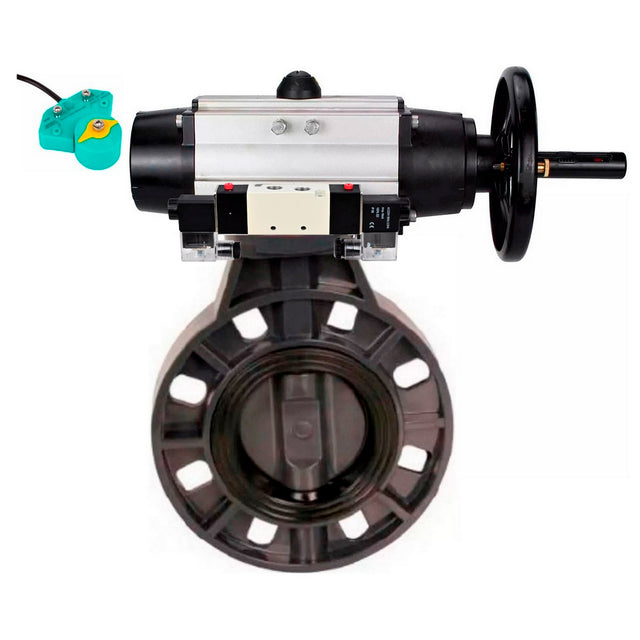 Butterfly valves Elephant WBV4242E-2W-Fb-ISO, body material - UPVC, disc material - UPVC, seal - EPDM, with pneumatic actuator double action PA-DA-105-1, pneumatic distributor 4V320-10 220V and magnetic switch ALS200D