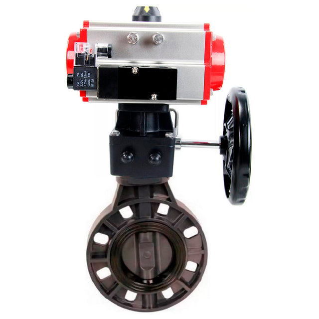 Butterfly valves Elephant WBV4242E-2W-Fb-ISO, body material - UPVC, disc material - UPVC, seal - EPDM, with pneumatic actuator double action PA-DA, pneumatic distributor 4M310-08 NAMUR 24V and handwheel MON