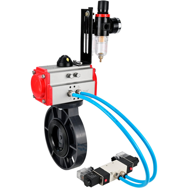 Butterfly valves Elephant WBV4242E-2W-Fb-ISO, body material - UPVC, disc material - UPVC, seal - EPDM, with pneumatic actuator double action PA-DA, pneumatic distributor 4V320-08 220V and ATU AFC2000