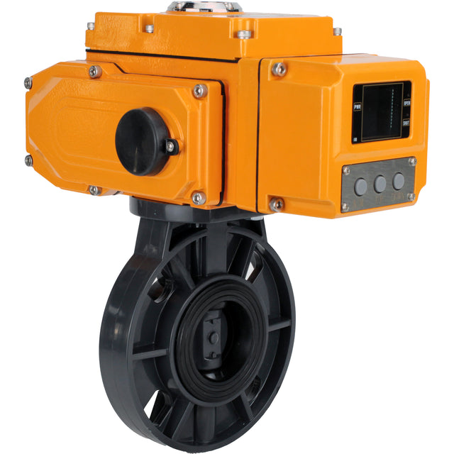 Butterfly valves Elephant WBV4242E-2W-Fb-ISO, body material - UPVC, disc material - UPVC, seal - EPDM, with quarter-turn actuator QT-N-EM-A1-220VAC-U1 HARK, feedback sensor and 4-20mA input control signal