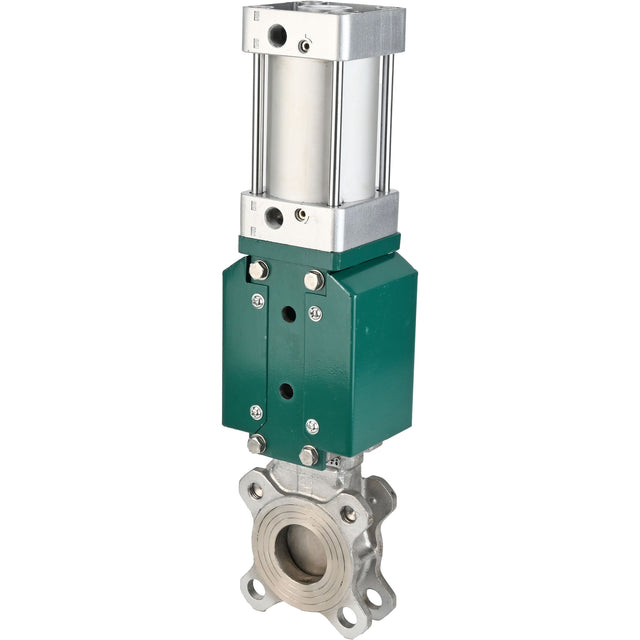 Konstruktion und Werkstoffe des Tores Elephant GVK3131E-2W-Fb-2P PSI232, Zwischenflansch, Gehäusematerial - Edelstahl AISI 304, mit pneumatischem Antrieb