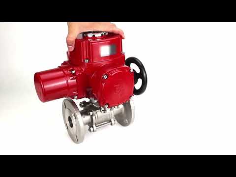 Ball valve DN.ru BV3131P(3pc)-FP-F-ISO-H Du15 Ru40 three-piece made of stainless steel SS304, flanged, seal - PTFE, full bore, with 1/4-turn electric actuator DN.ru QT-EX-005M-O2-380VAC-U1