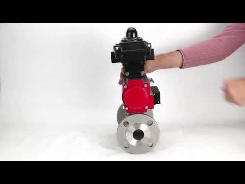 Edelstahl-Kugelhahn Elephant BVFPT-ISO.316.180 dreiteilig, Gehäusewerkstoff - Edelstahl SS316, Dichtung - PTFE, Flansch, voller Durchgang, pneumatischer Antrieb Elephant DA, pneumatischer Verteiler 4M310-08 220 V, Endschalterblock APL-410N EX