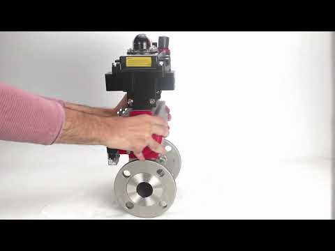Edelstahl-Kugelhahn Elephant BVFPT-ISO.316.180 dreiteilig, Gehäusewerkstoff - Edelstahl SS316, Dichtung - PTFE, Flansch, voller Durchgang, pneumatischer Antrieb Elephant DA, pneumatischer Verteiler 4M310-08 24 V, Endschalterblock APL-410N EX, Luft - DN15 / 40 bar ist auf Lager und wird versandt, sobald es wieder verfügbar ist