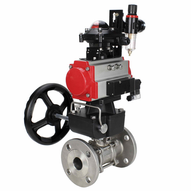 Kugelhahn aus Edelstahl Elephant ksfpt-316-180-da-4m310-110/220v-apl210n-hdm-afc2000, Gehäusematerial - Edelstahl AISI 316, Kugelmaterial - Edelstahl AISI 316, Dichtung - PTFE, pneumatisch betätigt