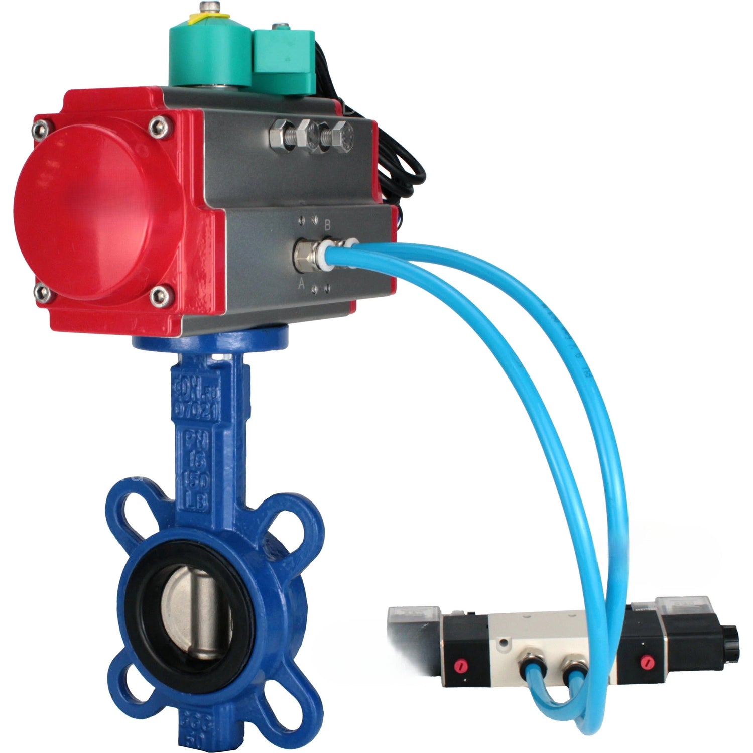 Water Butterfly Valve Elephant WBV1132N-2W-Fb-H DN40-300 16 bar body - GG25 cast iron, disc - 316L stainless steel, seal - NBR, with pneumatic actuator PA-DA-XXX, pneumatic distributor 4V320-10 220V and ALS200D magnetic switch