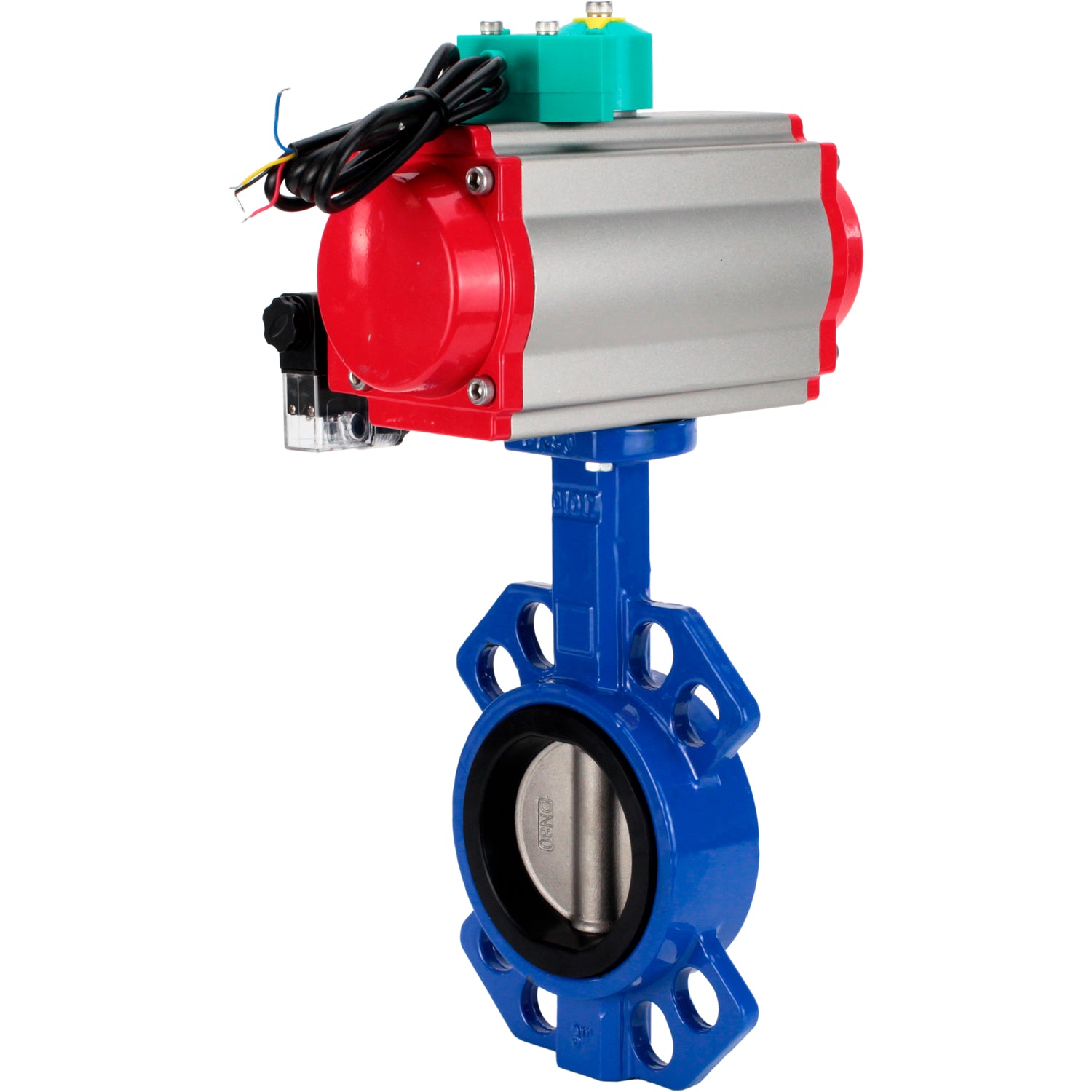 Water Butterfly Valve Elephant WBV1432E-2W-Fb-H DN40-300 16 bar body - GGG50 cast iron, disc - 316L stainless steel, seal - EPDM, with pneumatic actuator PA-DA-XXX, pneumatic distributor 4M310-08 NAMUR 220V and ALS200D magnetic switch