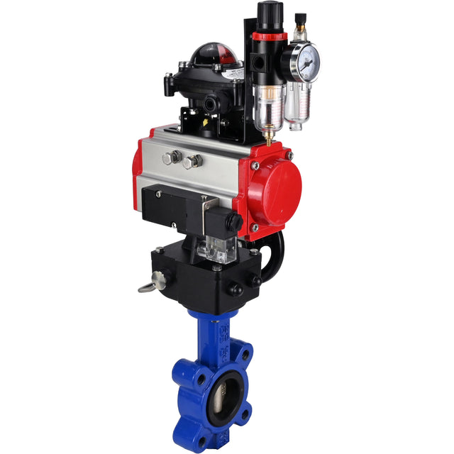 Absperrklappen WBV1616N-2W-Fb-H, Gehäusematerial - Gusseisen QT450, Scheibenmaterial - Gusseisen QT450, Dichtung - NBR, pneumatischer Antrieb PA-DA Doppelwirkung, 4M310-08 220V, LSU APL-210N, Handrad MON, ATU AFC2000