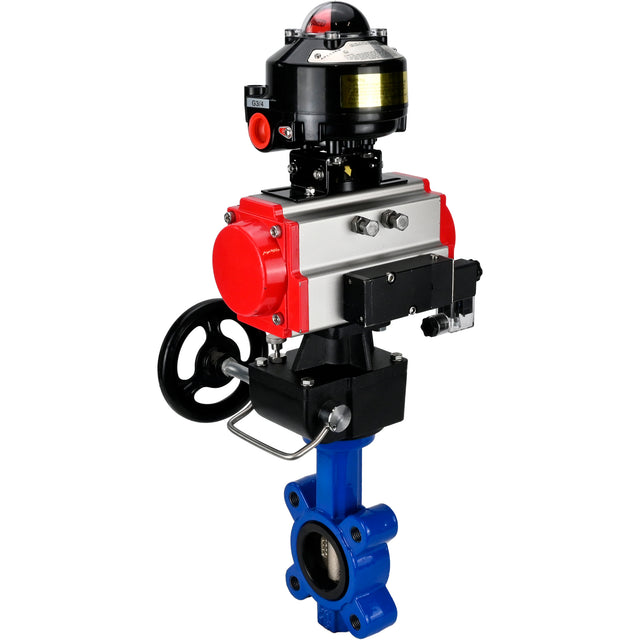 Absperrklappen WBV1616N-2W-Fb-H, Gehäusematerial - Gusseisen QT450, Scheibenmaterial - Gusseisen QT450, Dichtung - NBR, pneumatischer Antrieb PA-DA Doppelwirkung, 4M310-08 220V, LSU APL-510N EX, Handrad MON