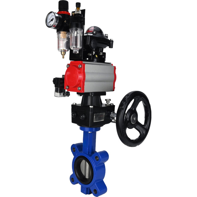 Absperrklappen WBV1631N-2W-Fb-H, Gehäusematerial - Gusseisen QT450, Scheibenmaterial - Edelstahl AISI 304, Dichtung - NBR, pneumatischer Antrieb PA-DA Doppelwirkung, 4M310-08 24V, LSU APL-210N, Handrad MON, ATU AFC2000