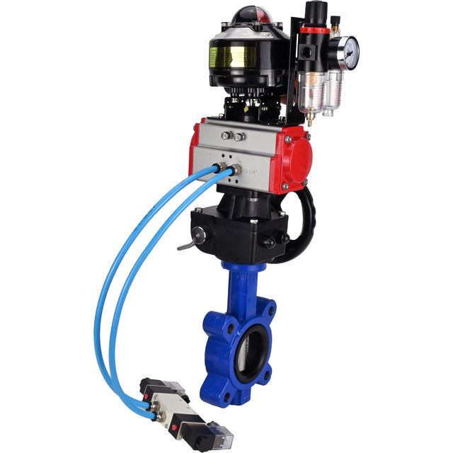 Absperrklappen WBV1631N-2W-Fb-H, Gehäusematerial - Gusseisen QT450, Scheibenmaterial - Edelstahl AISI 304, Dichtung - NBR, pneumatischer Antrieb PA-DA Doppelwirkung, 4V320-08 220V, LSU APL-510N EX, Handrad MON, ATU AFC2000
